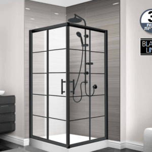 מקלחון פינתי 2 דלתות IN/OUT שחור פס חלבי