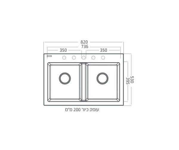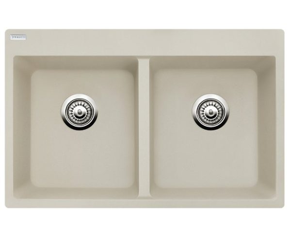 אוניקס 80 – כיור מטבח כפול מגרניט להתקנה שטוחה, מתאים לארון 80 ס”מ