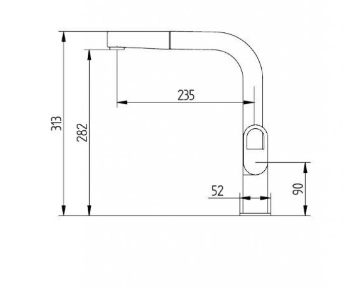 ברז מטבח, פיה אופקית מסתובבת, מזלף ארוך נשלף, מצב זרימה אחד