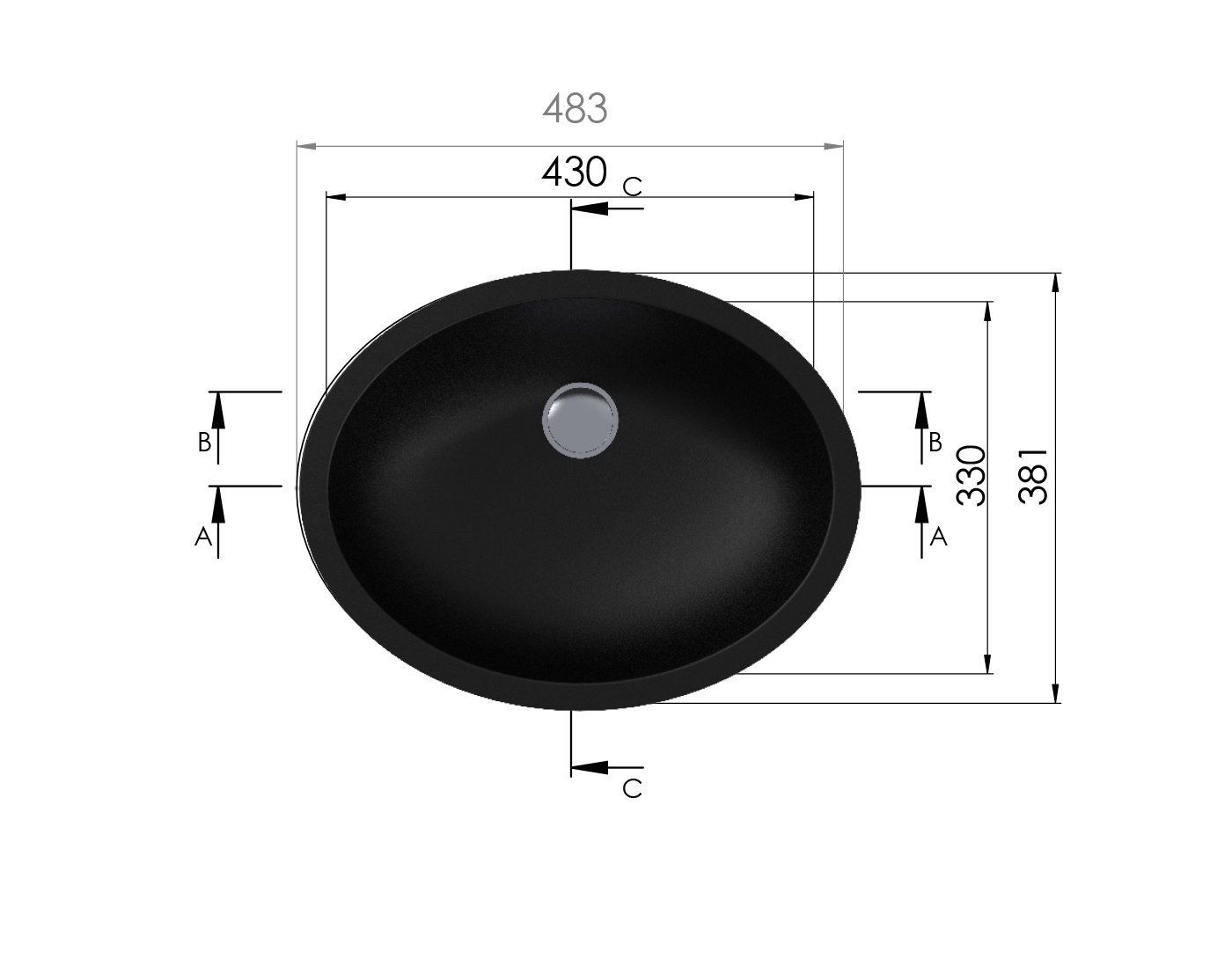 רוחב הכיור: 483 מ”מ