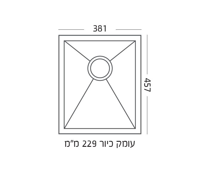 עלית 40 – כיור מטבח בודד מנירוסטה להתקנה שטוחה, מתאים לארון 40 ס”מ